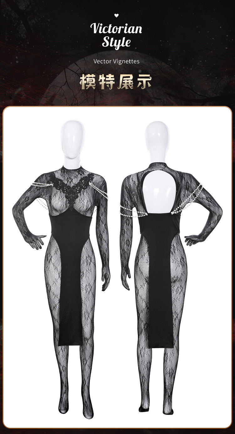 섹스 란제리 민소매 레이스 섹시 홀터넥 펀칭 스타킹 전신 망사 섹스 용품 8961