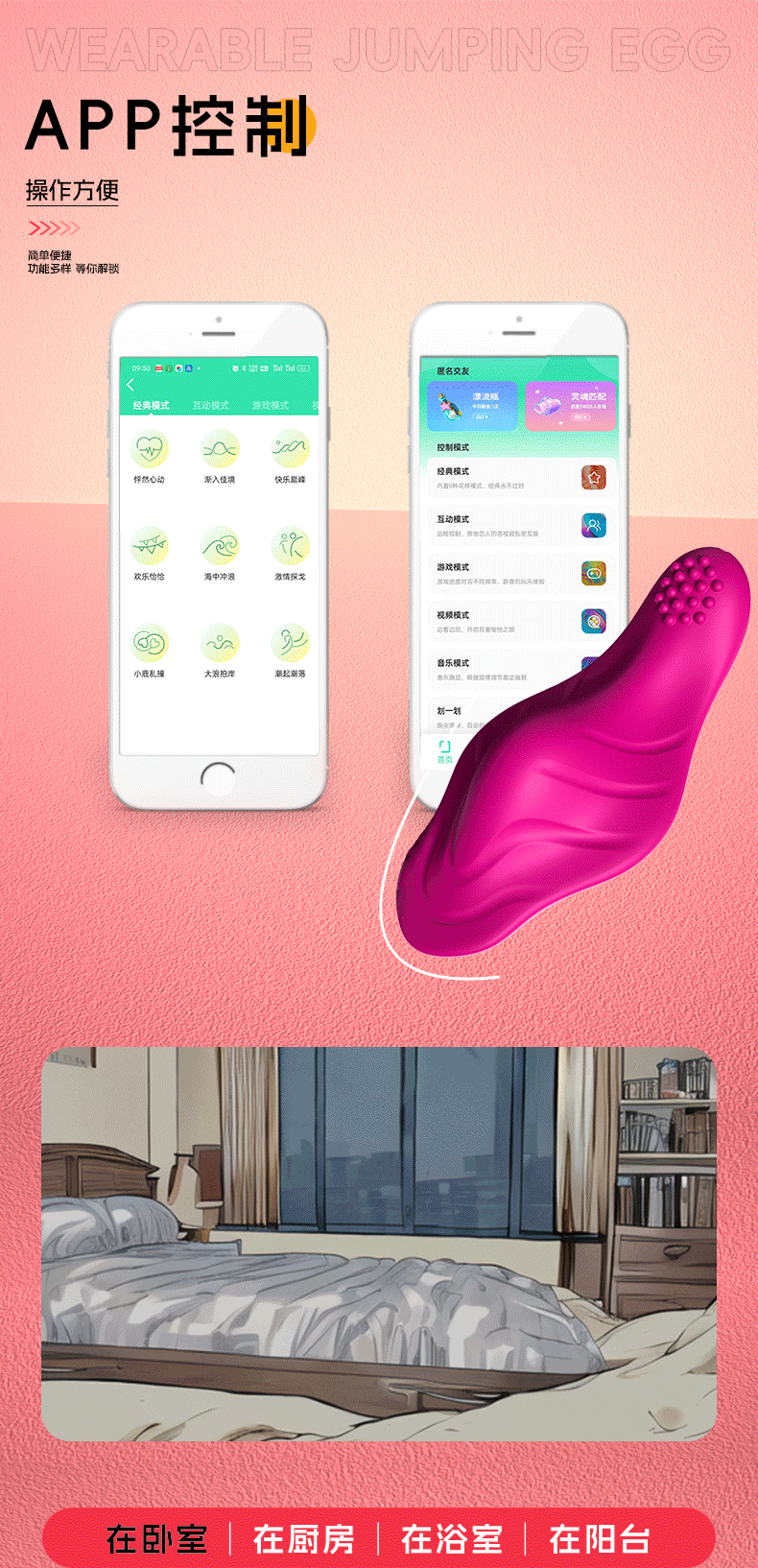 점프 알 모바일 앱 리모컨, 외출 시 착용 가능 초밀조 빨기 여성 취향 장난감