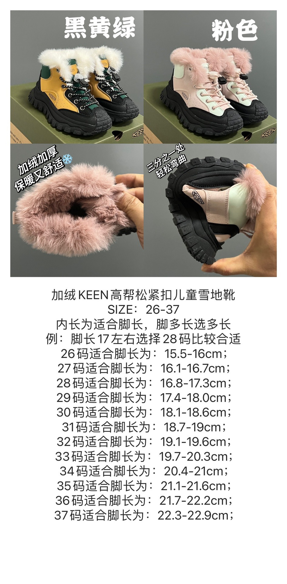 keen cohen 아동 야외 등산화 남녀 아동 두툼한 기모 보온 하이탑 방미끄럼 운동화