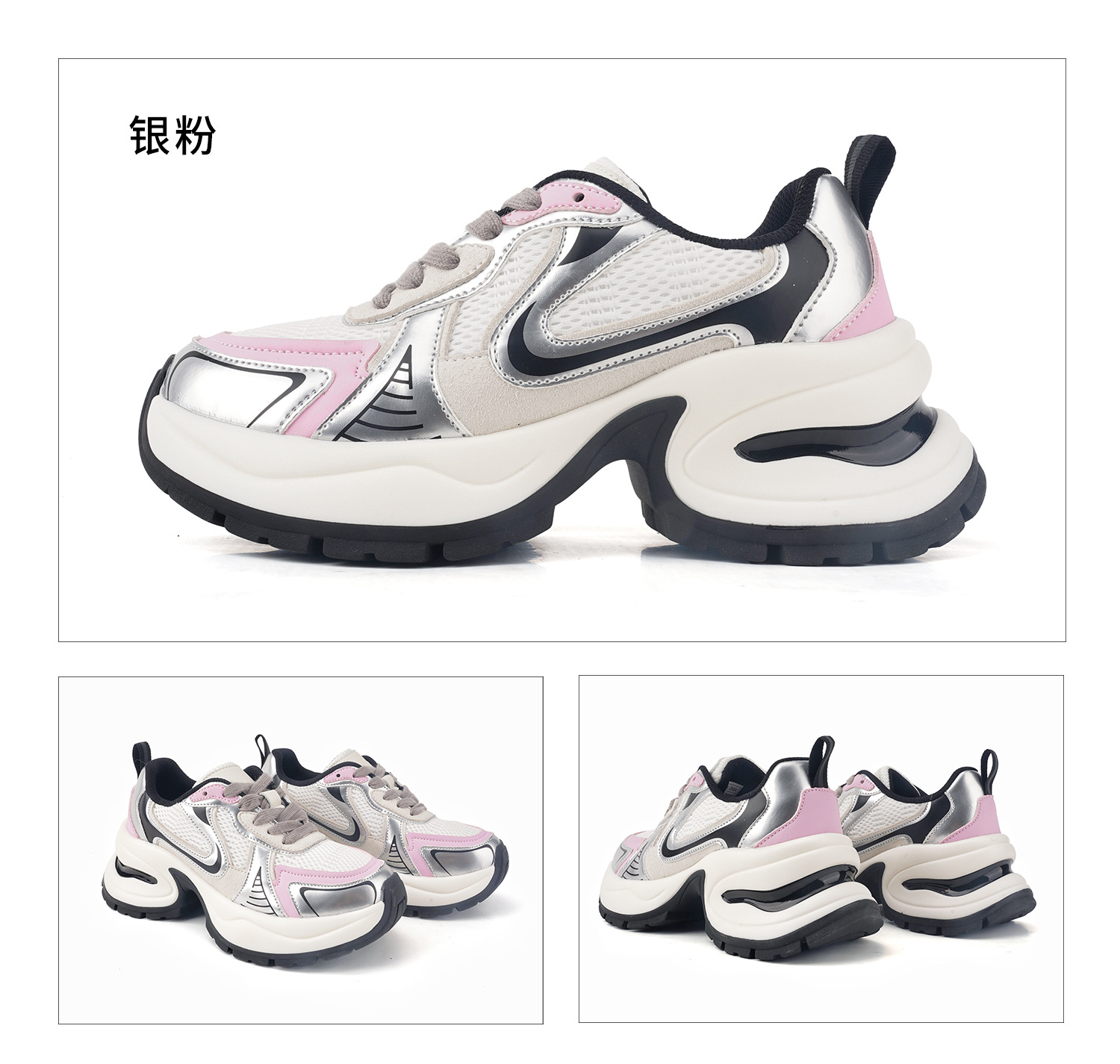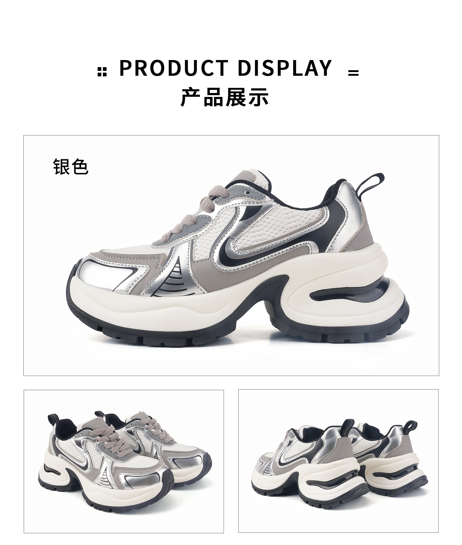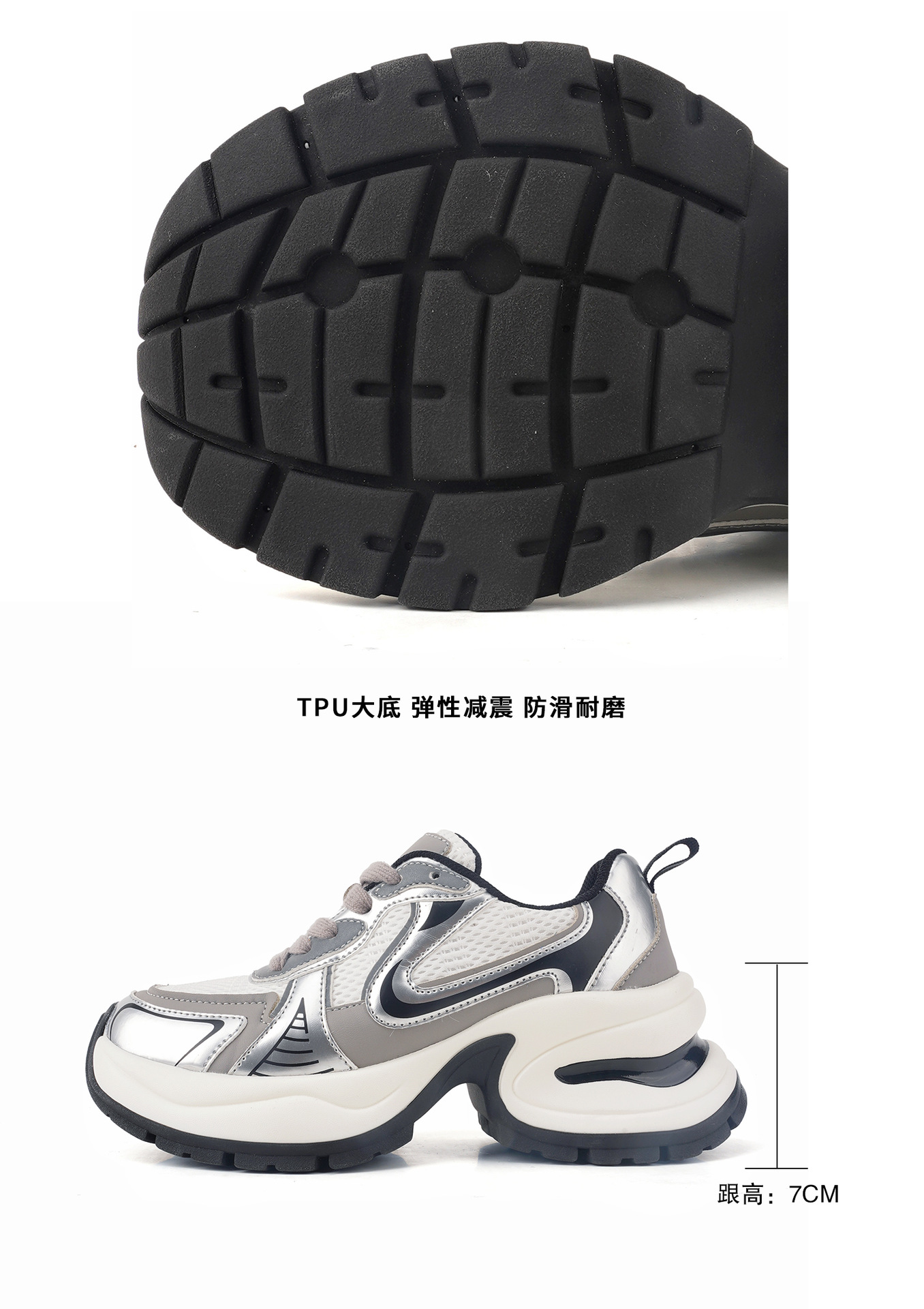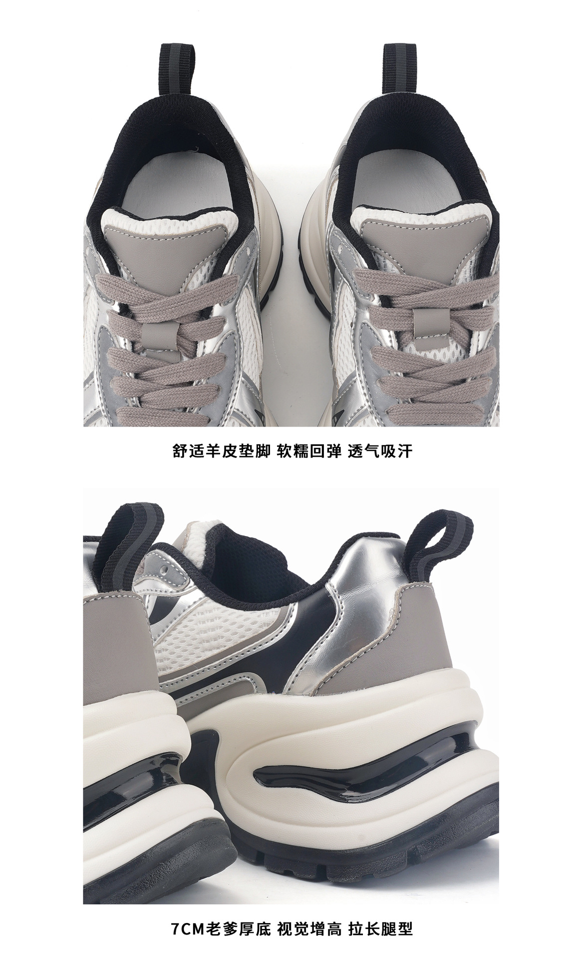 실버 가죽 두툼한 아빠 구두 여성도 키 높이 7 센티미터 스포티한 스니커즈