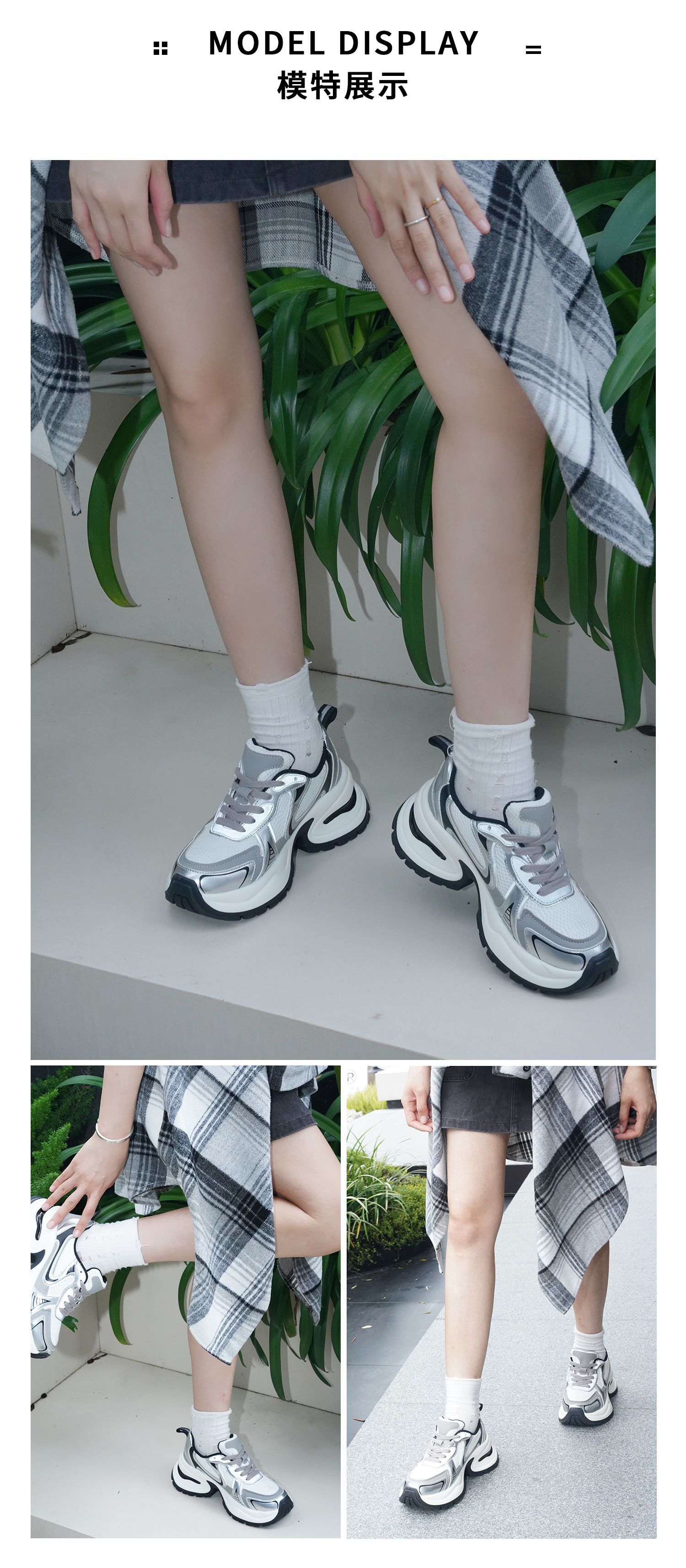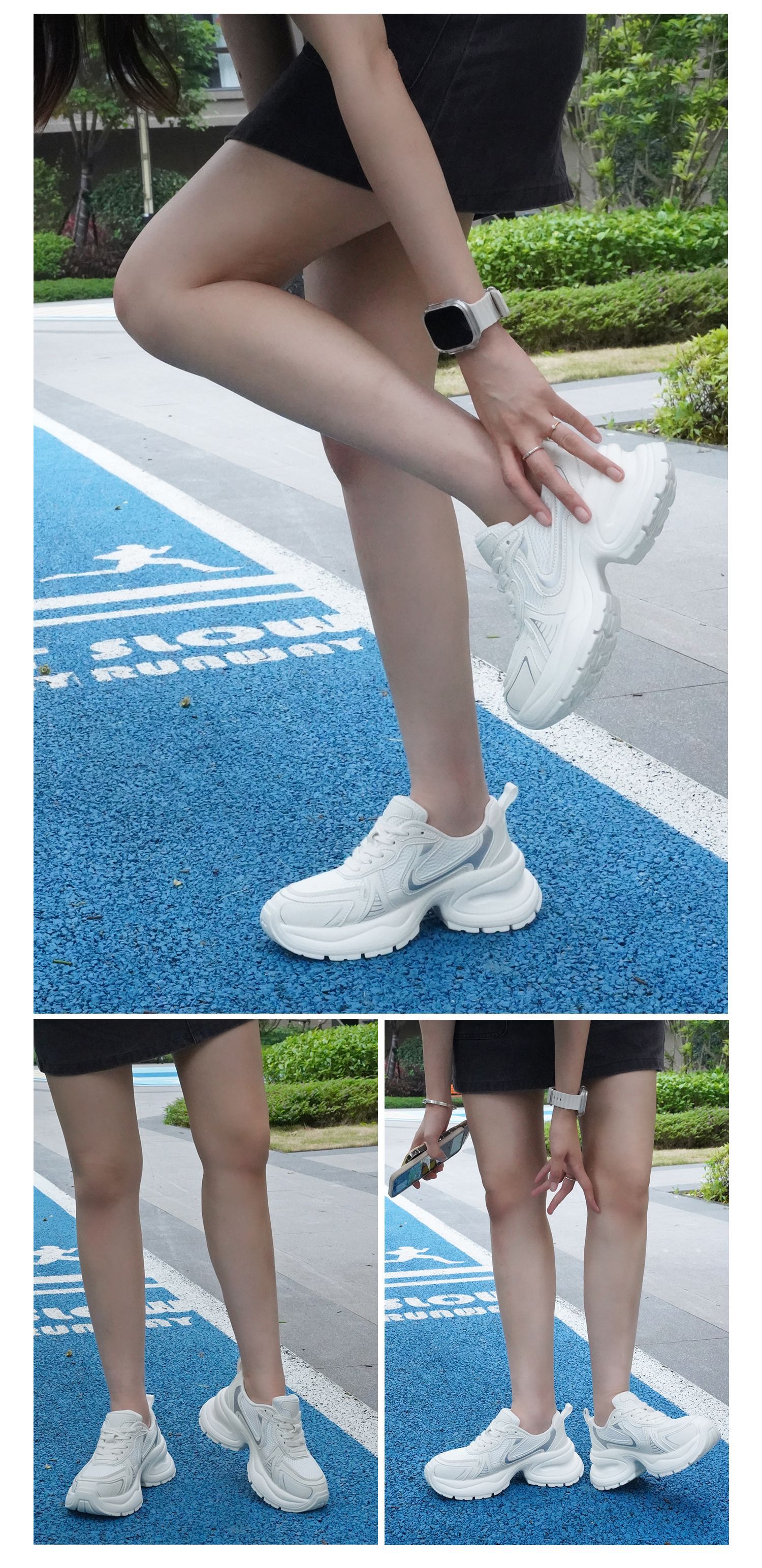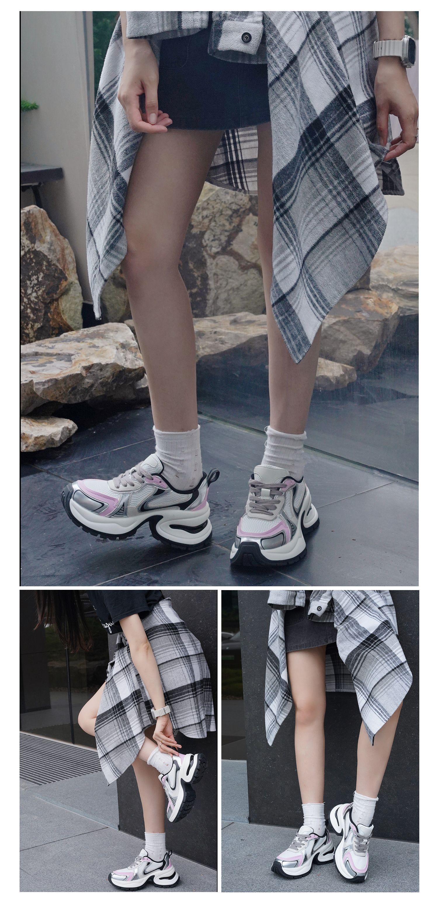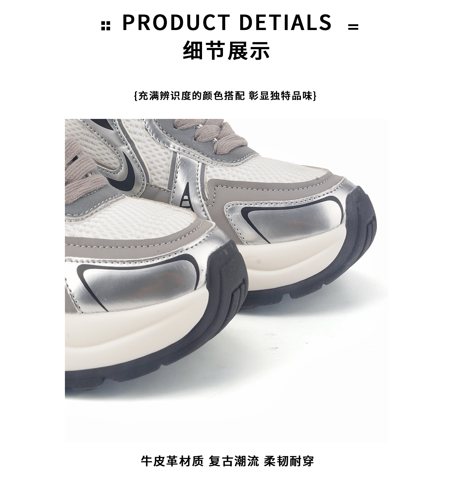 실버 가죽 두툼한 아빠 구두 여성도 키 높이 7 센티미터 스포티한 스니커즈