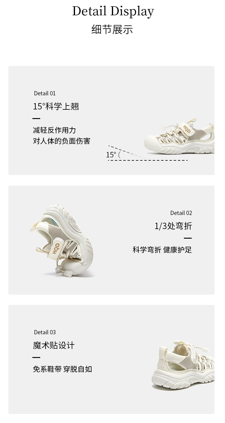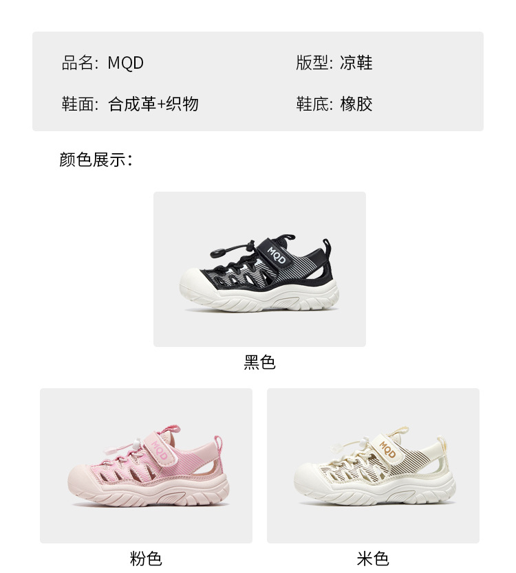 mqd 아쿠아틱 아동용 샌들 여름에 남녀 모두 착용하기 편하고 가볍고 간편한 벨크로 아동화