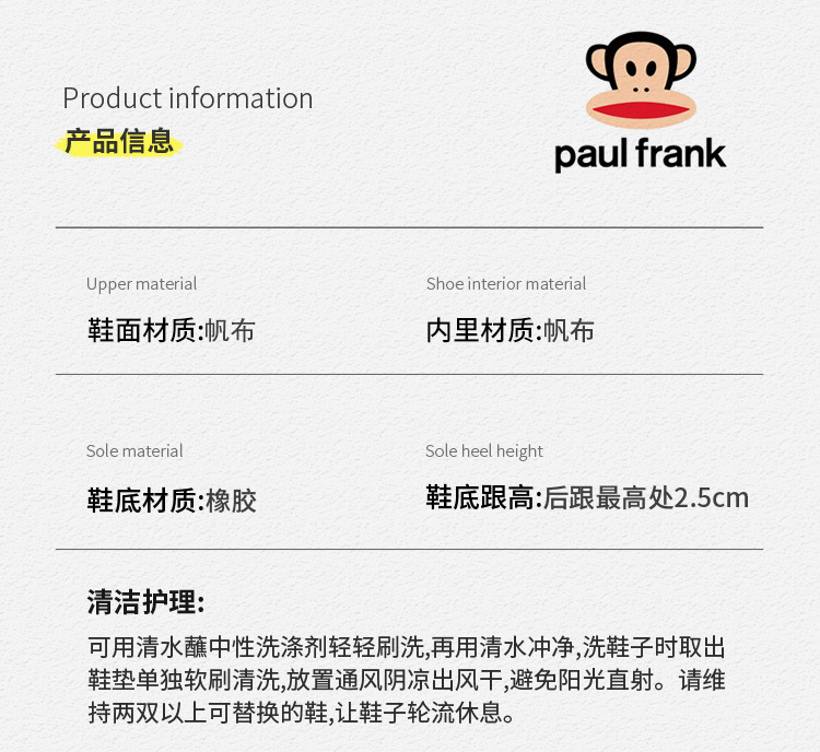 폴프랭크 팝코 캔버스 스니커즈 캐주얼 슈즈 고전적인 캔버스 화이트 슈즈