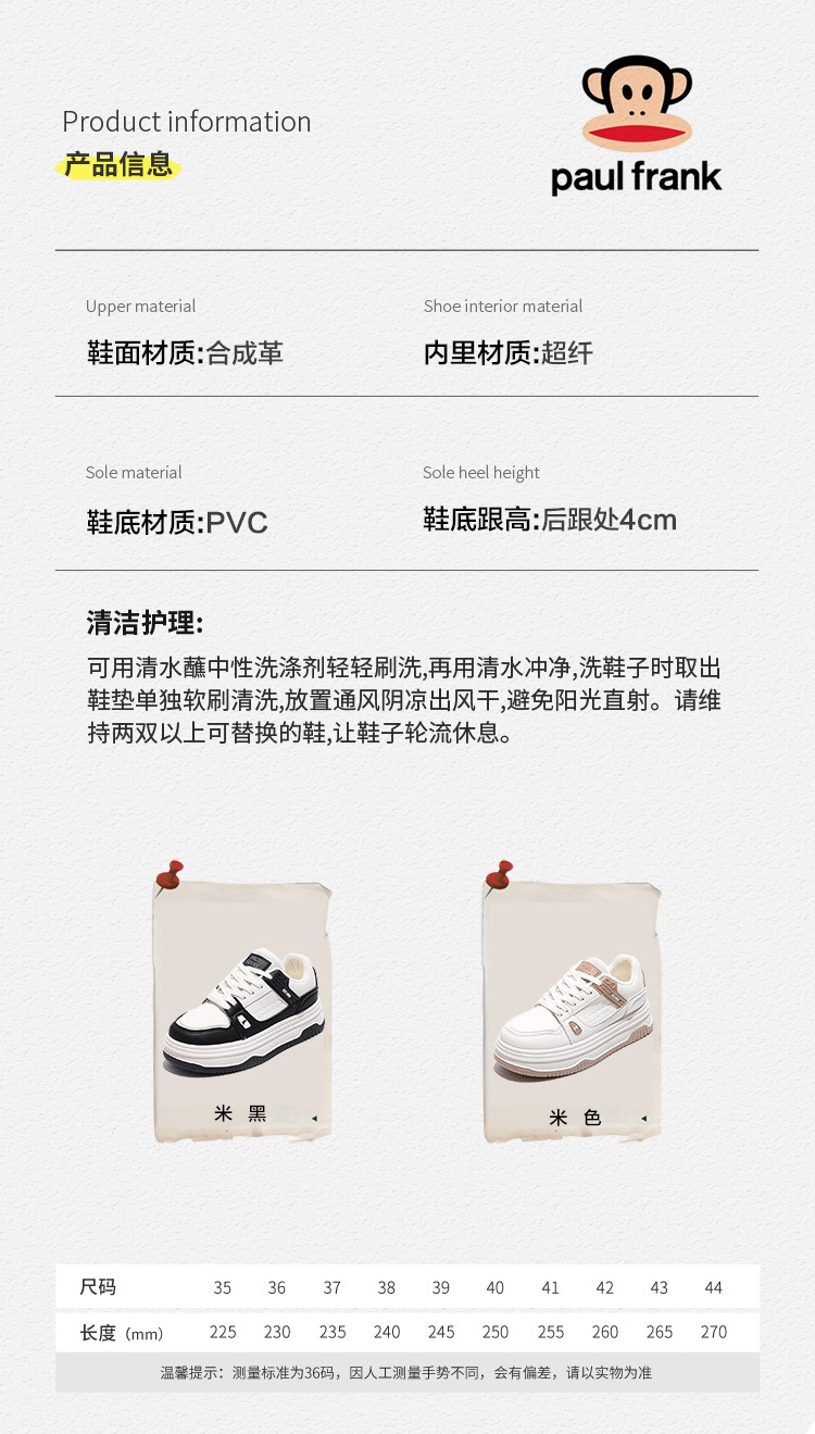 paulfrank 큰 입 원숭이 판다 구두 작은 흰색 구두 여성화 얇은 디자인 톡톡 튀는 캐주얼화 빵구두