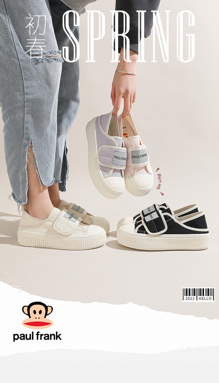 폴프랭크 (paulfrank) 원숭이는 캐주얼한 차림에 헐렁한 발에 미끄럽지 않은 부드러운 밑창의 여성용 캔버스 슈즈를 신는다
