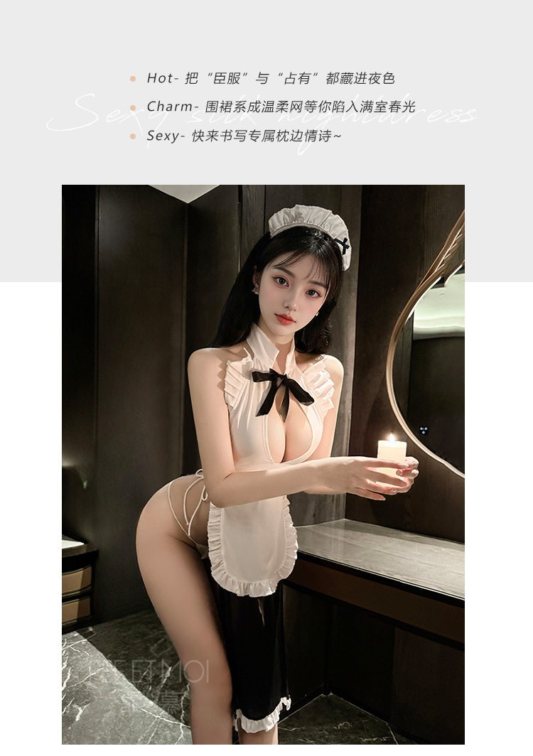 섹시한 란제리 하녀 정장 가슴 드러내고 엉덩이 드러낸 섹시함 제복 벗고 잠옷 유혹해