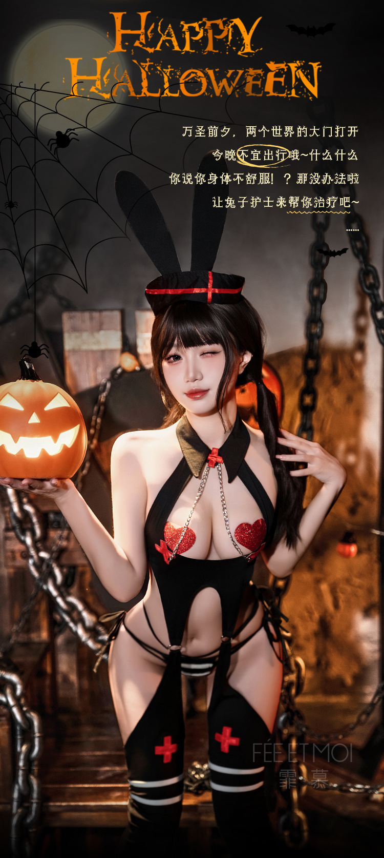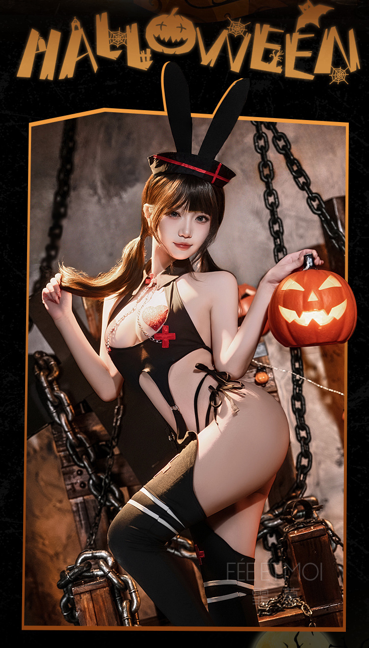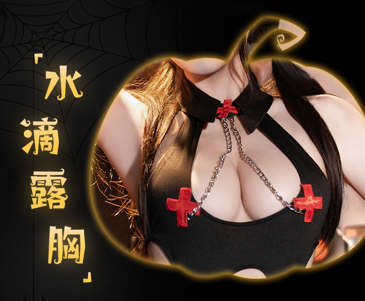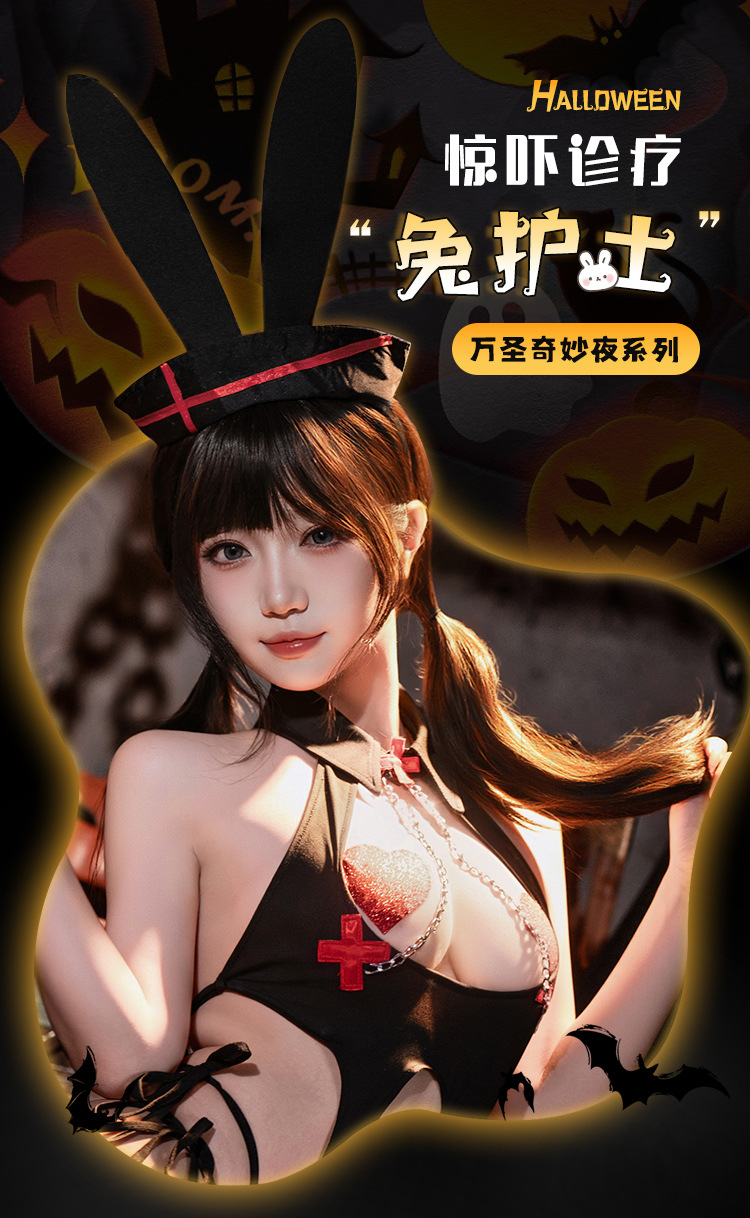 섹시 속옷 할로윈 코스 토끼 간호사 제복 섹시 점프슈트 가슴 노출