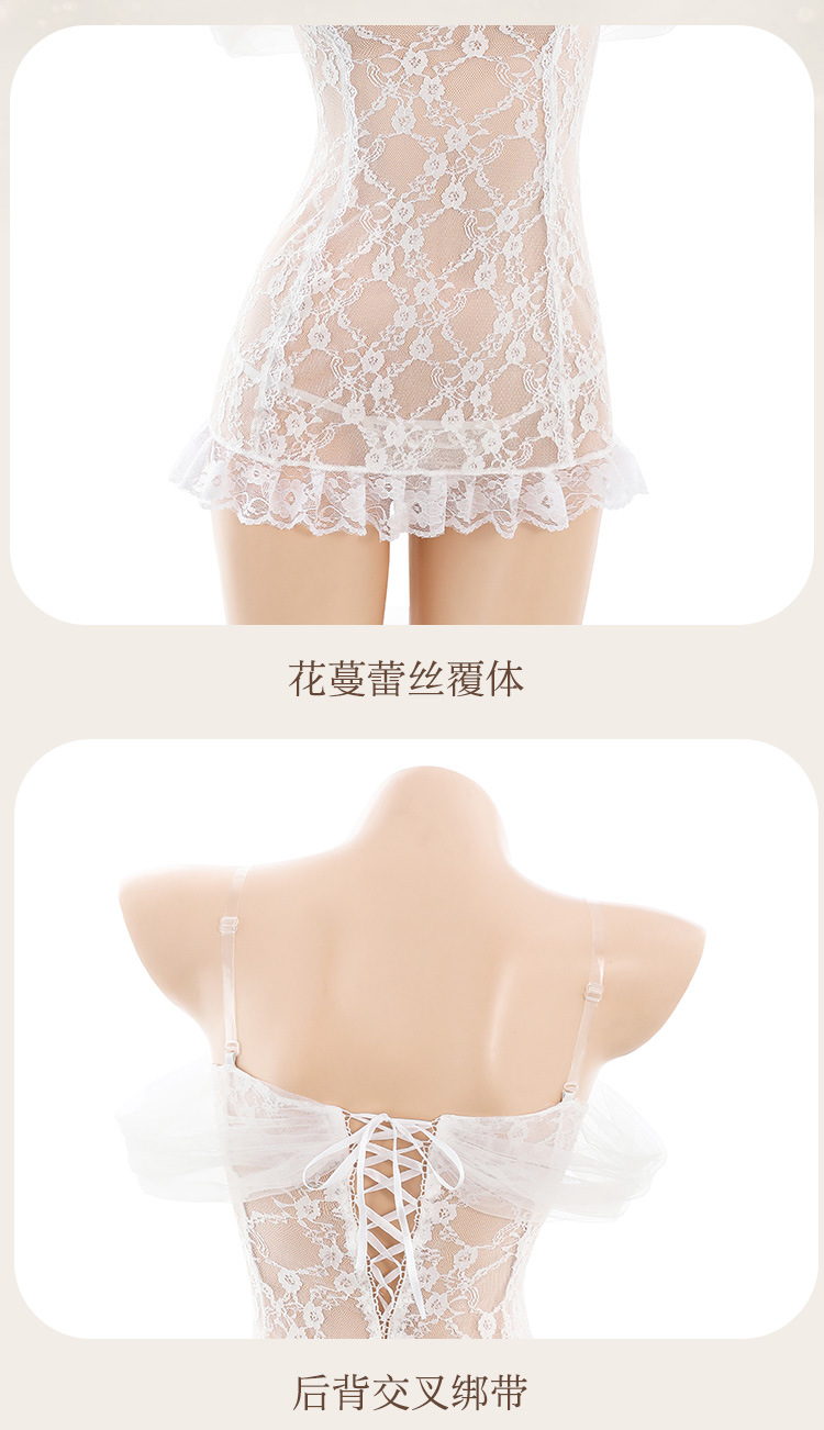 섹시한 속옷 일자어깨 레이스 신부 세트 섹시한 시스루 파자마