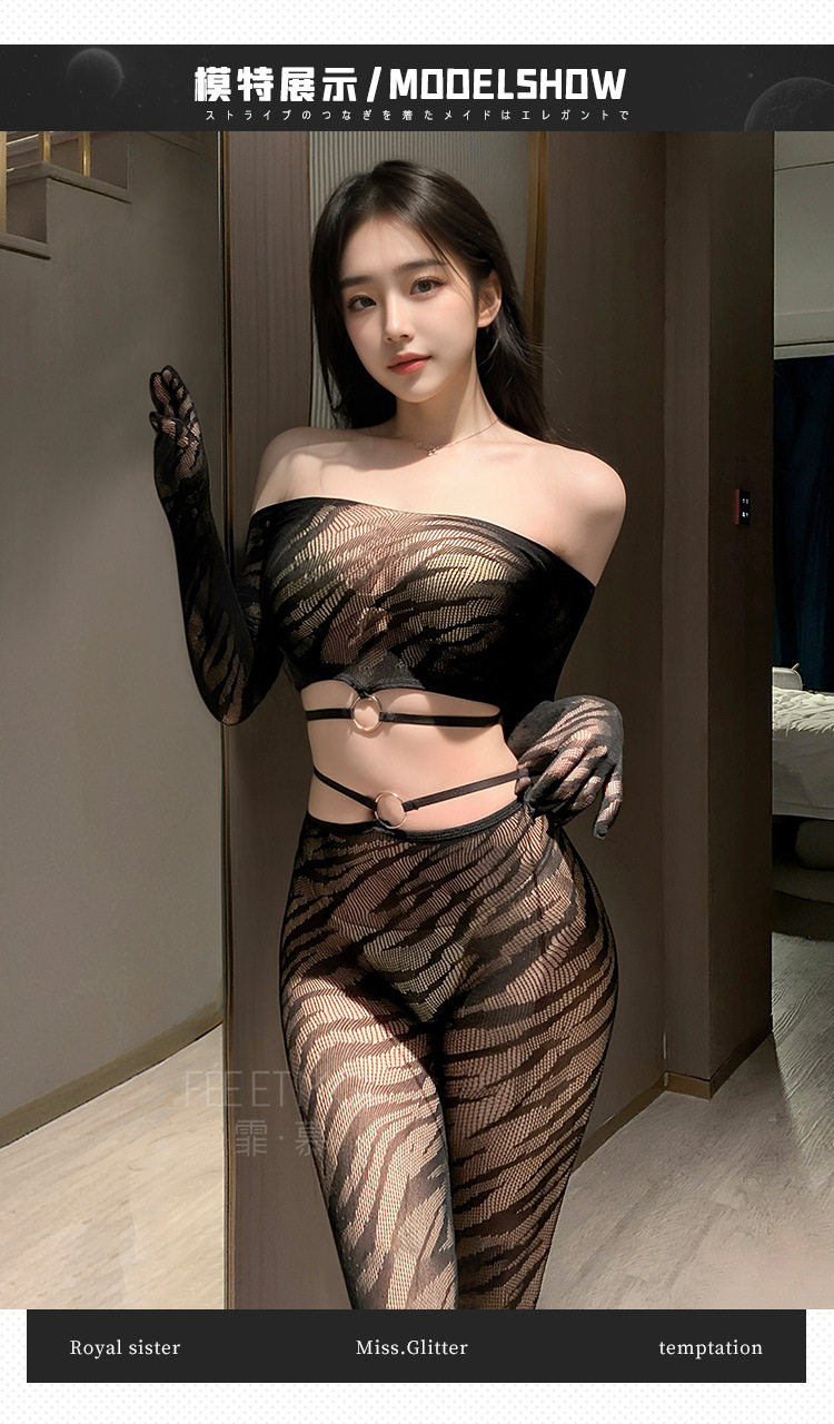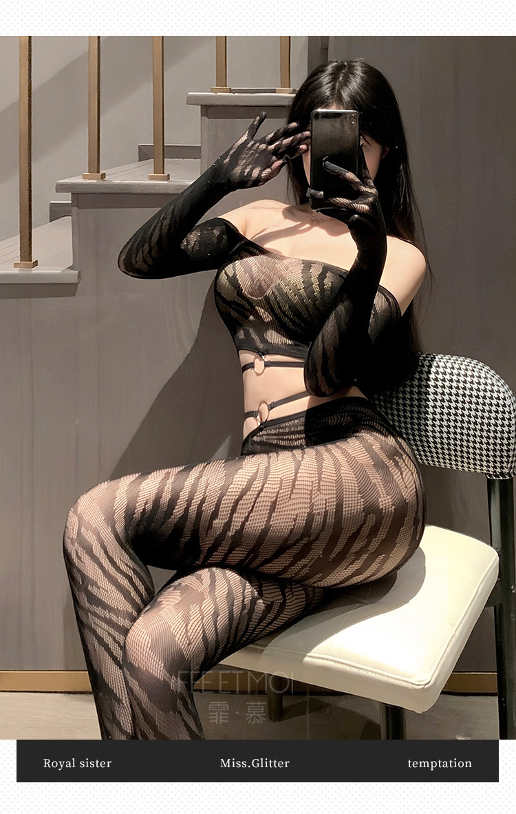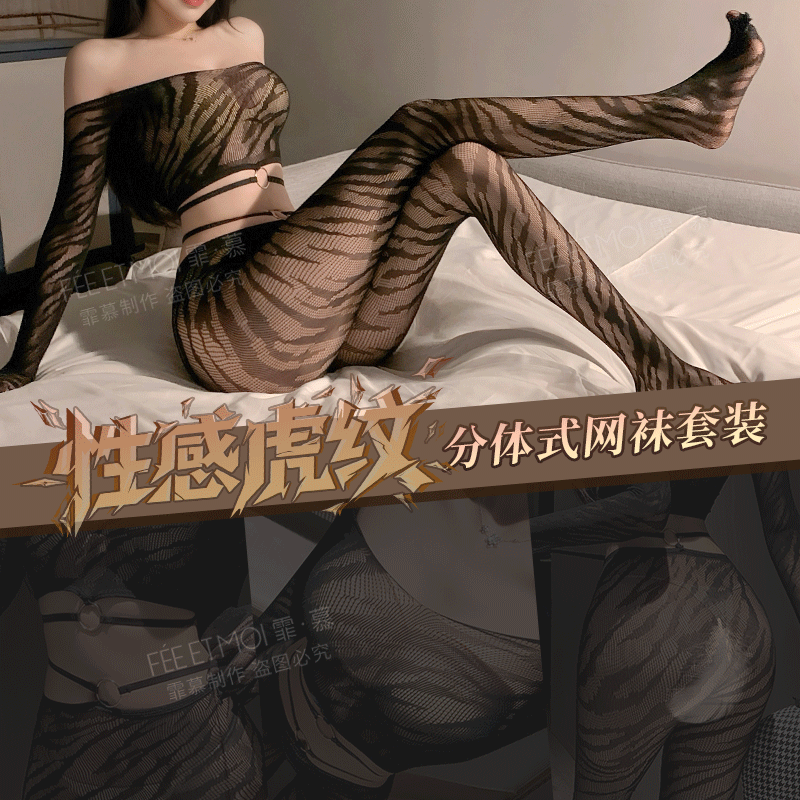 섹시 타이거 무늬 분리형 덧버선 시스루 트렌디 스타킹 검은 실크로 섹시한 속옷을 입었다